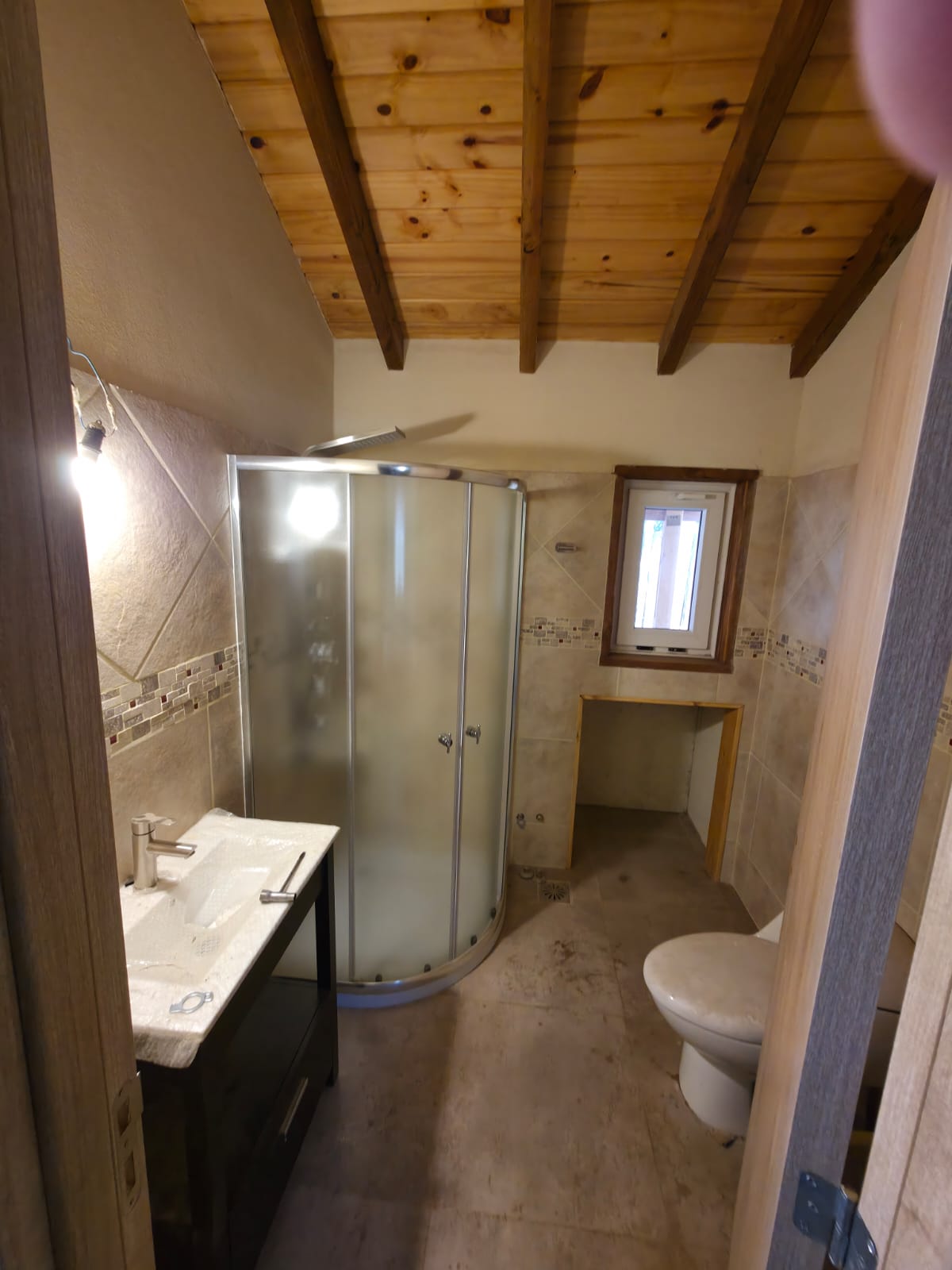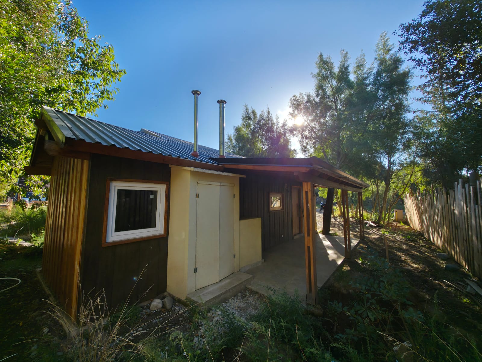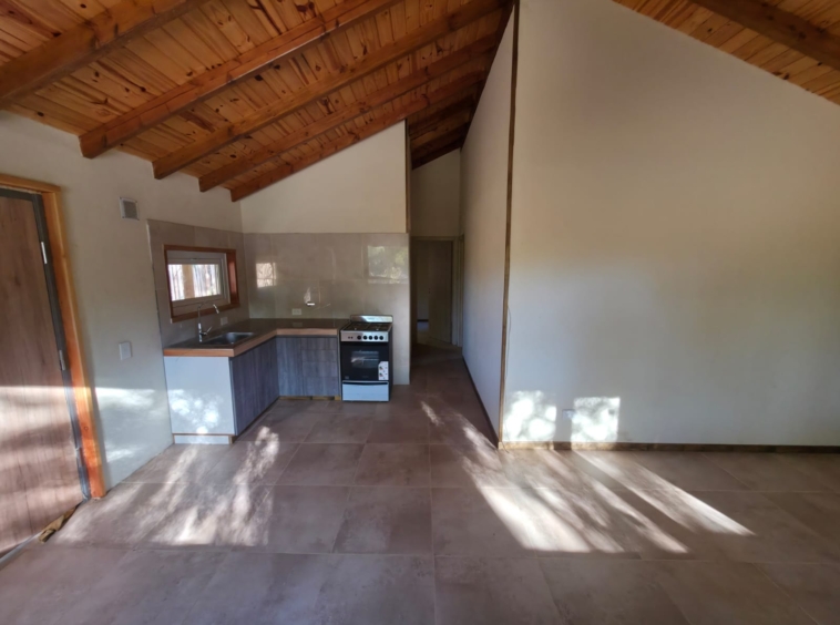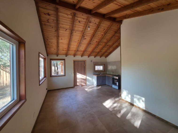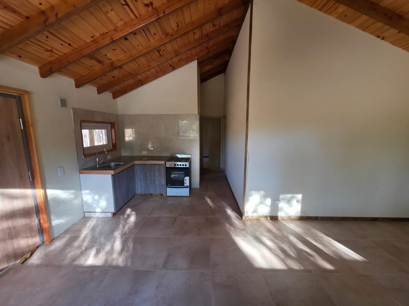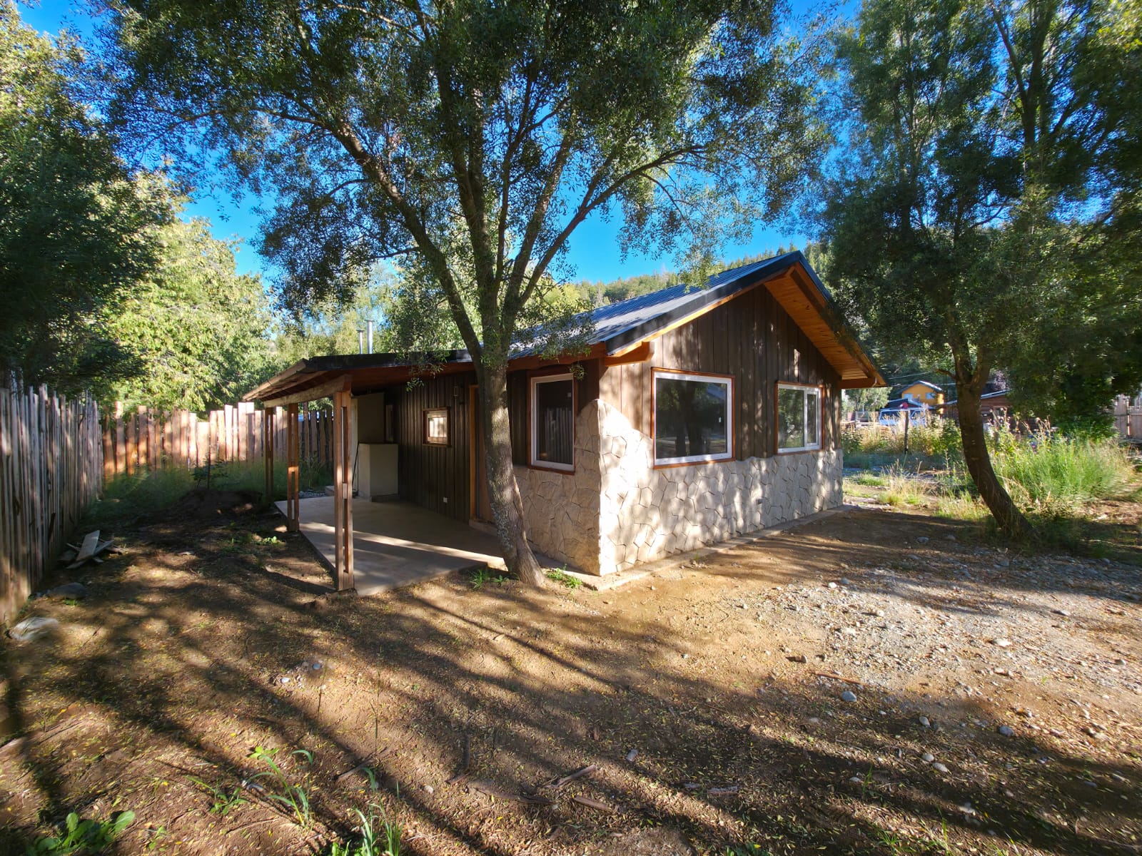 la propiedad es una cabaña de 65 m2 en una planta con terreno propio de 250 m2 aprox. construida con materiales de alta calidad, paneles zip, revestimiento en madera y piedra.